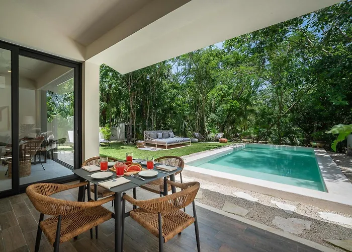 Die Villa Chic Retreat Puerto Aventuras liegt nur 14 Fußminuten vom Dolphin Discovery Riviera Maya entfernt und verfügt über einen Swimmingpool zur Entspannung der Gäste.